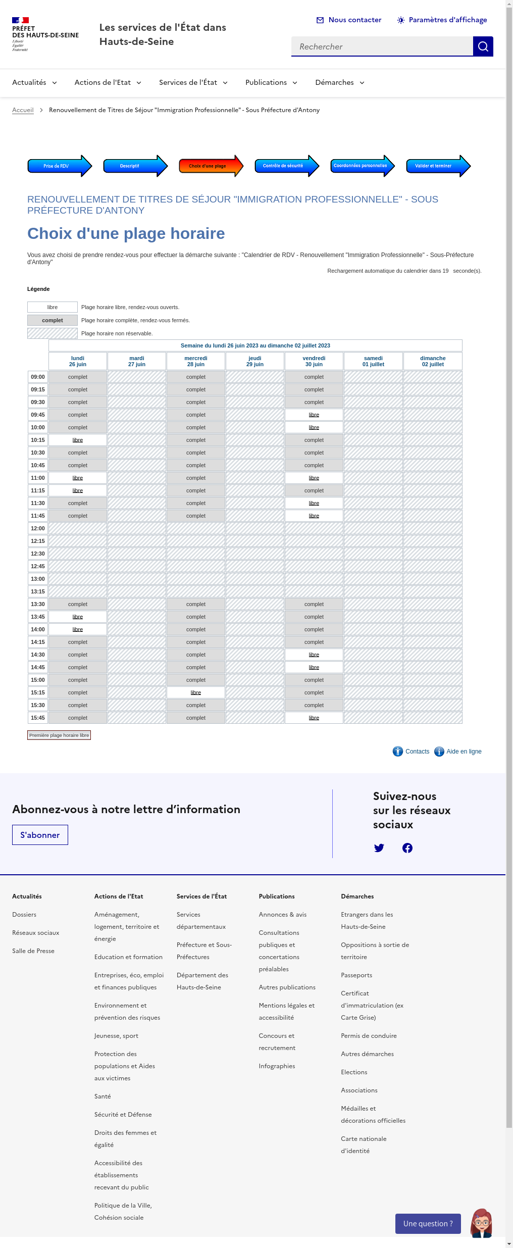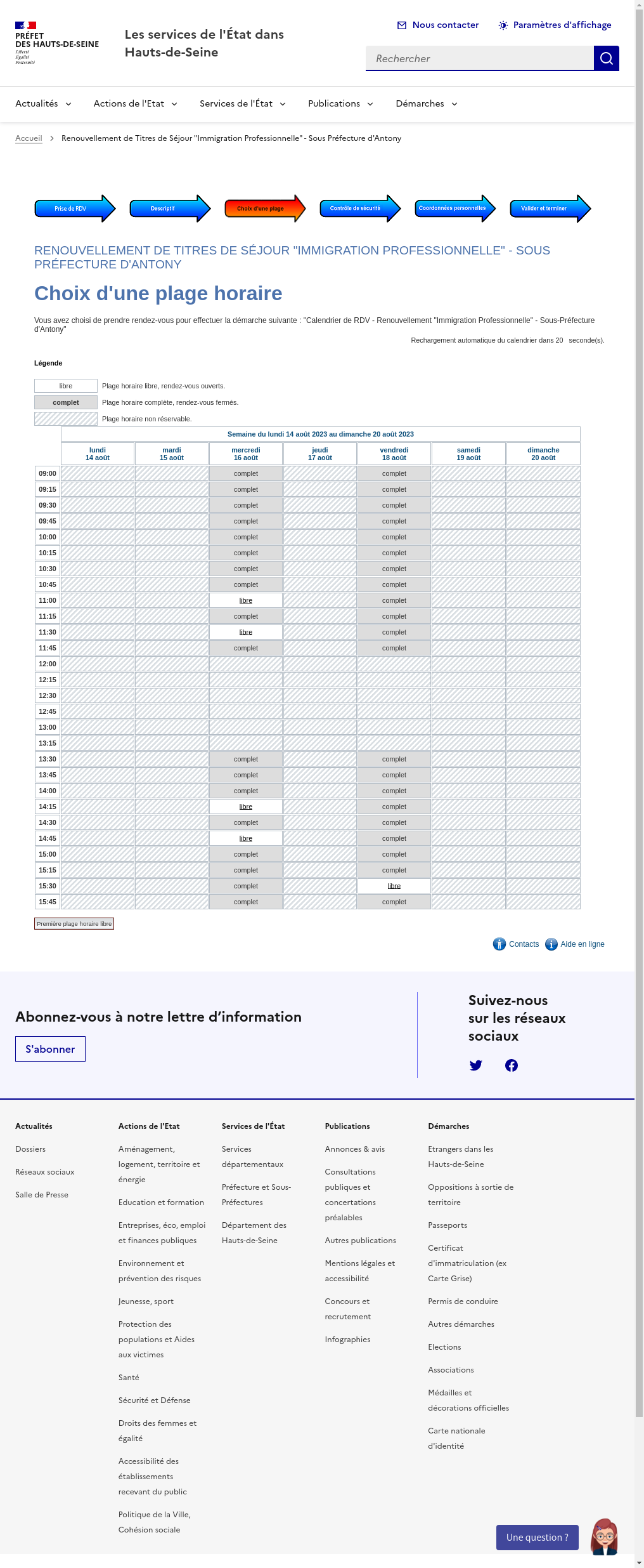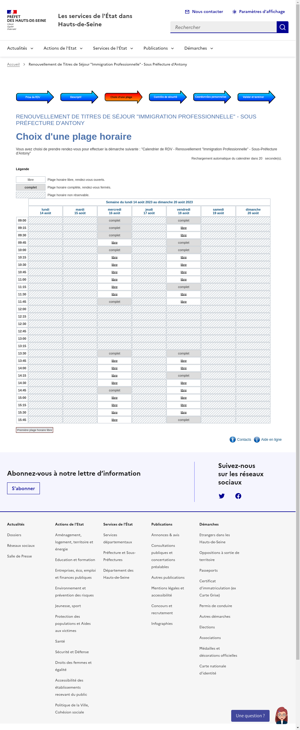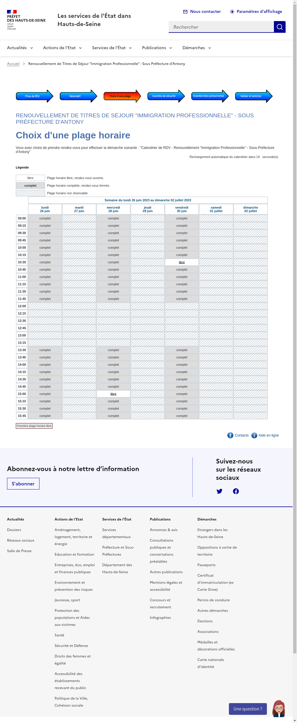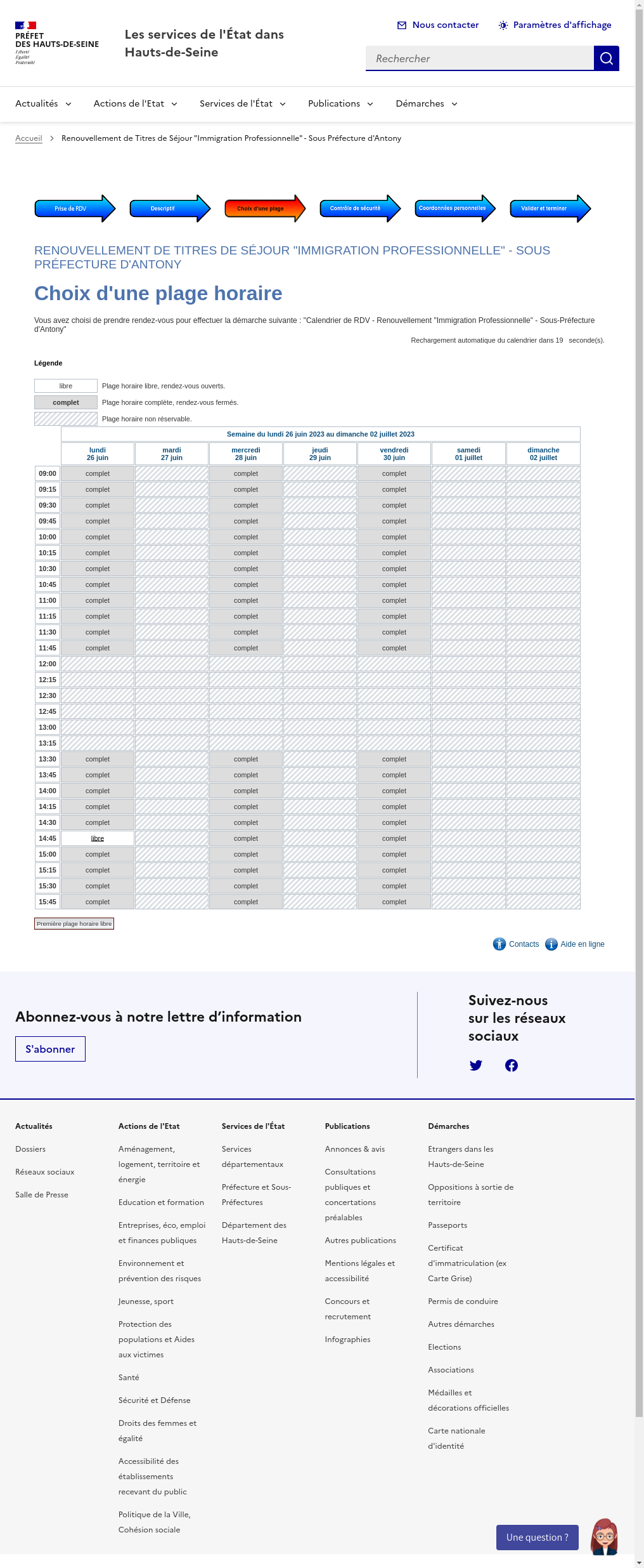 Vous souhaiter être alerter dès qu'un RDV est disponible à la préfecture Antony pour la démarche Renouvellement de titre de séjour immigration professionnelle (Hors passeport talent) ?
