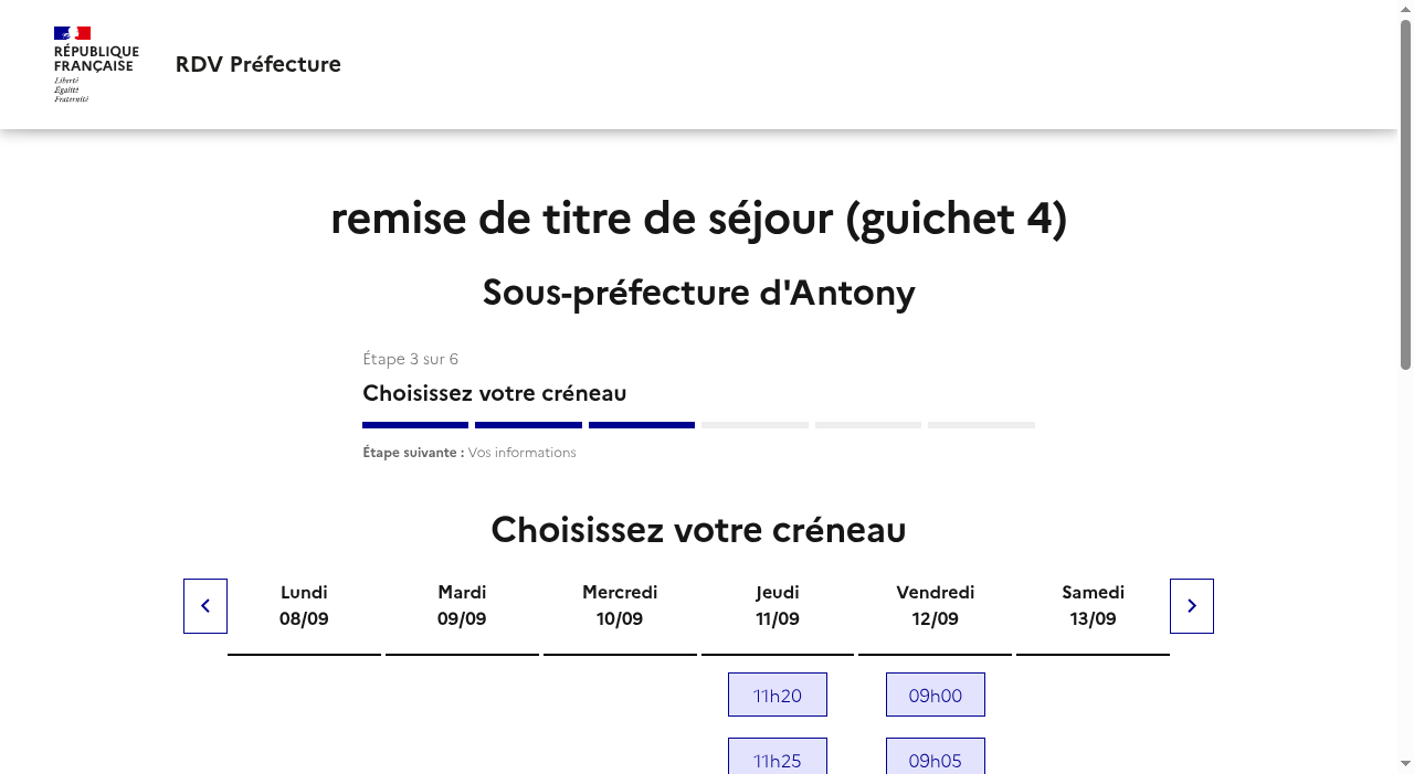 Vous souhaiter être alerter dès qu'un RDV est disponible à la préfecture Antony pour la démarche Remise de titre de séjour Antony - Guichet 4 ?