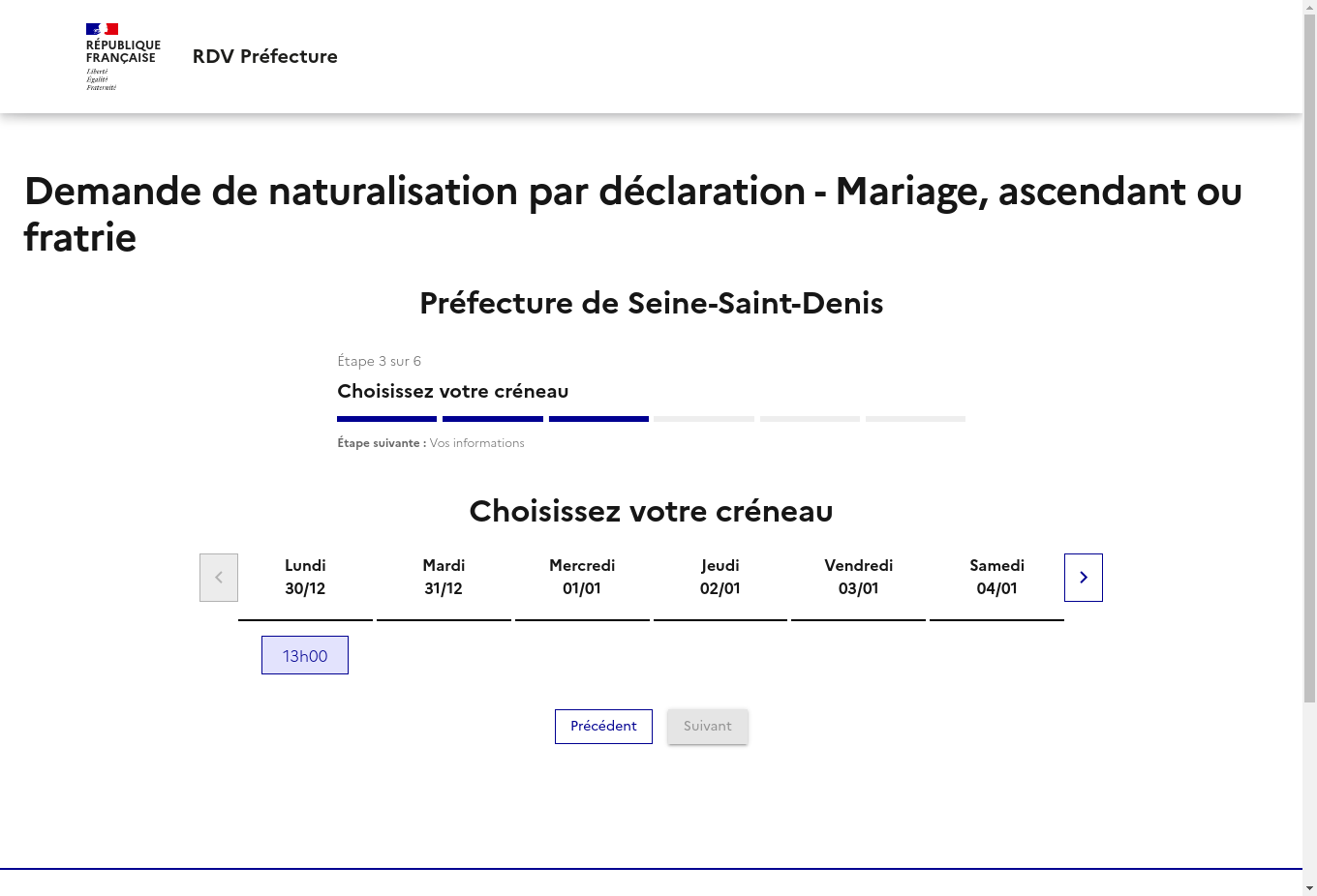 la démarche Demande de naturalisation française par déclaration - mariage, ascendant et fratrie - département de la Seine-Saint-Denis ?