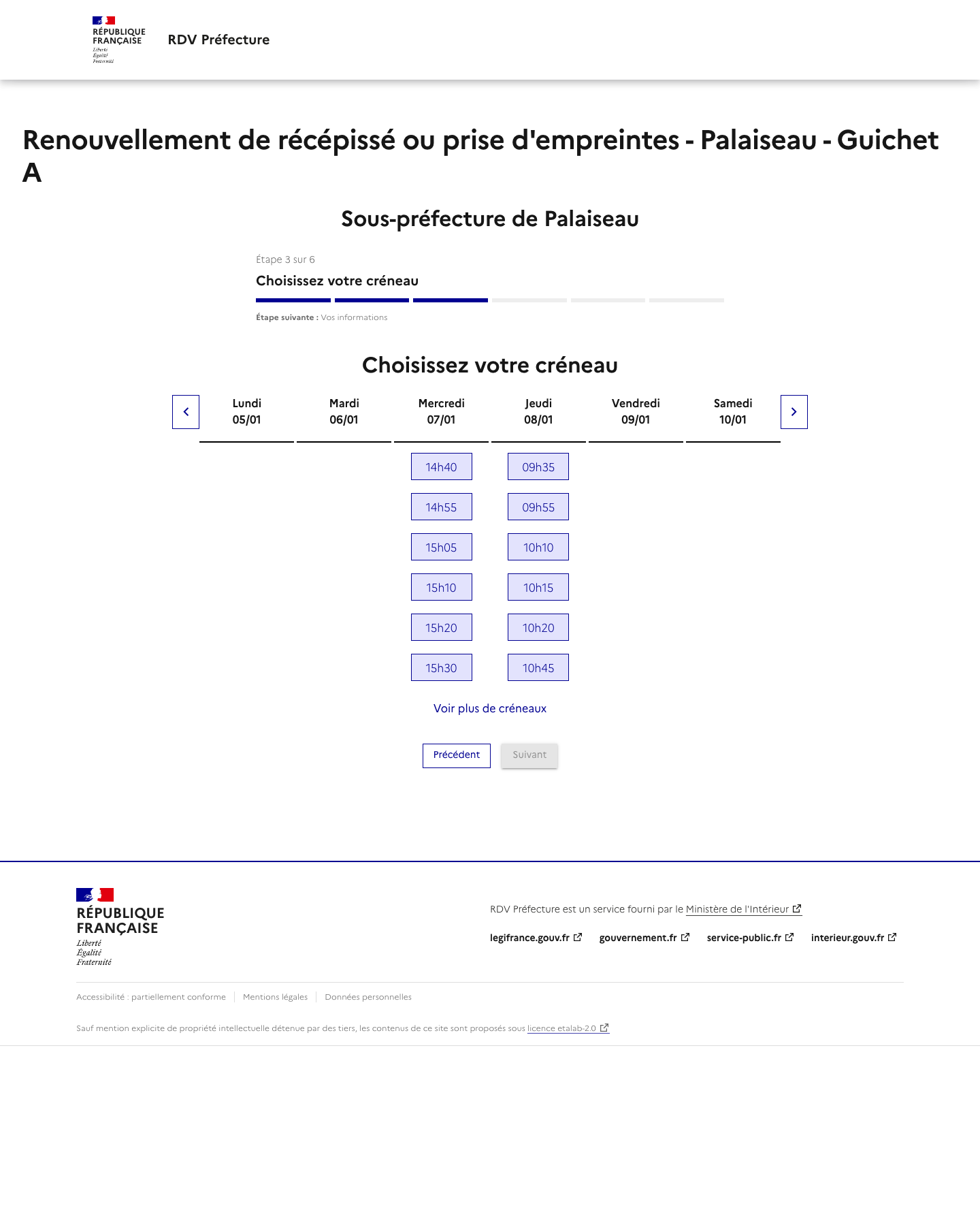 Vous souhaiter être alerter dès qu'un RDV est disponible à la préfecture Palaiseau pour la démarche Renouvellement de récépissé ou prise d'empreintes - Guichet A ?