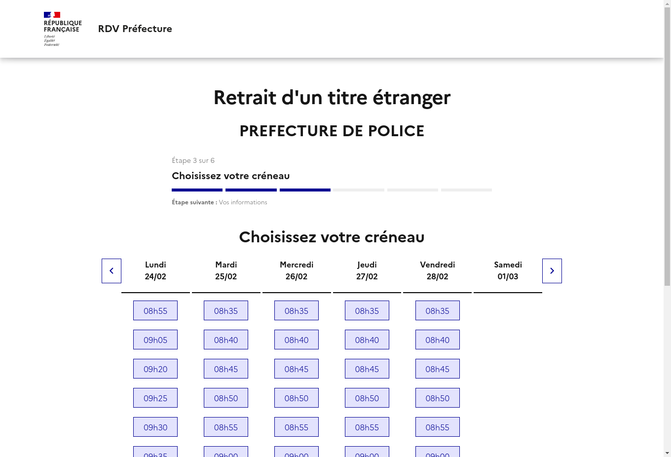 Notre service vous alerte lorsqu'un rendez-vous est disponible mais ne réserve pas de rendez-vous. La disponibilité des rendez-vous dépend totalement des préfectures. Rappel: Les rendez-vous proposés par les préfectures sont gratuits et vous pouvez trouver un rendez-vous par vos propres moyens ! Nous ne sommes pas un site gouvernemental ou un site de préfecture.