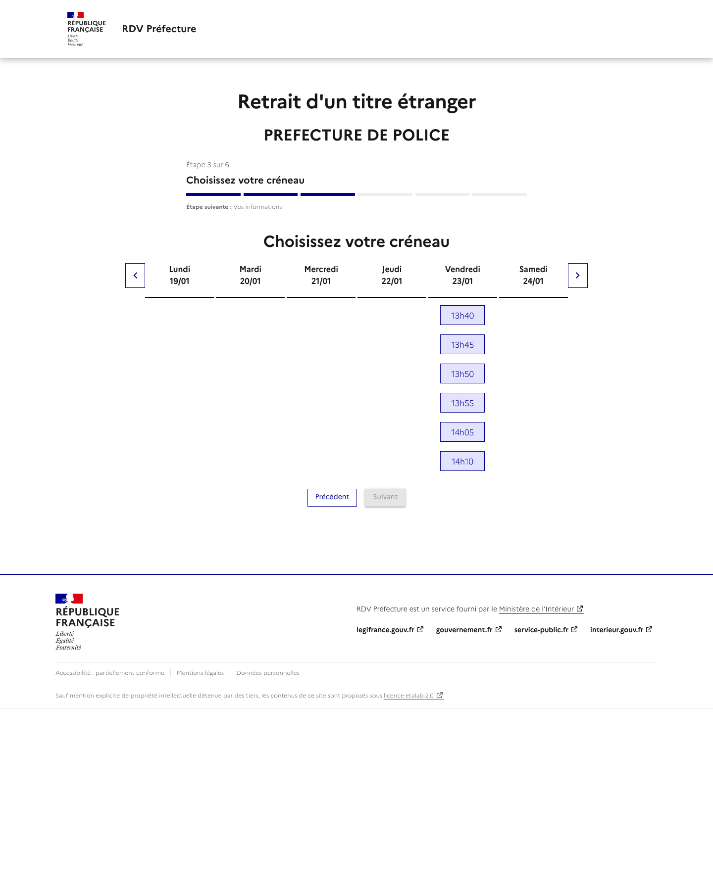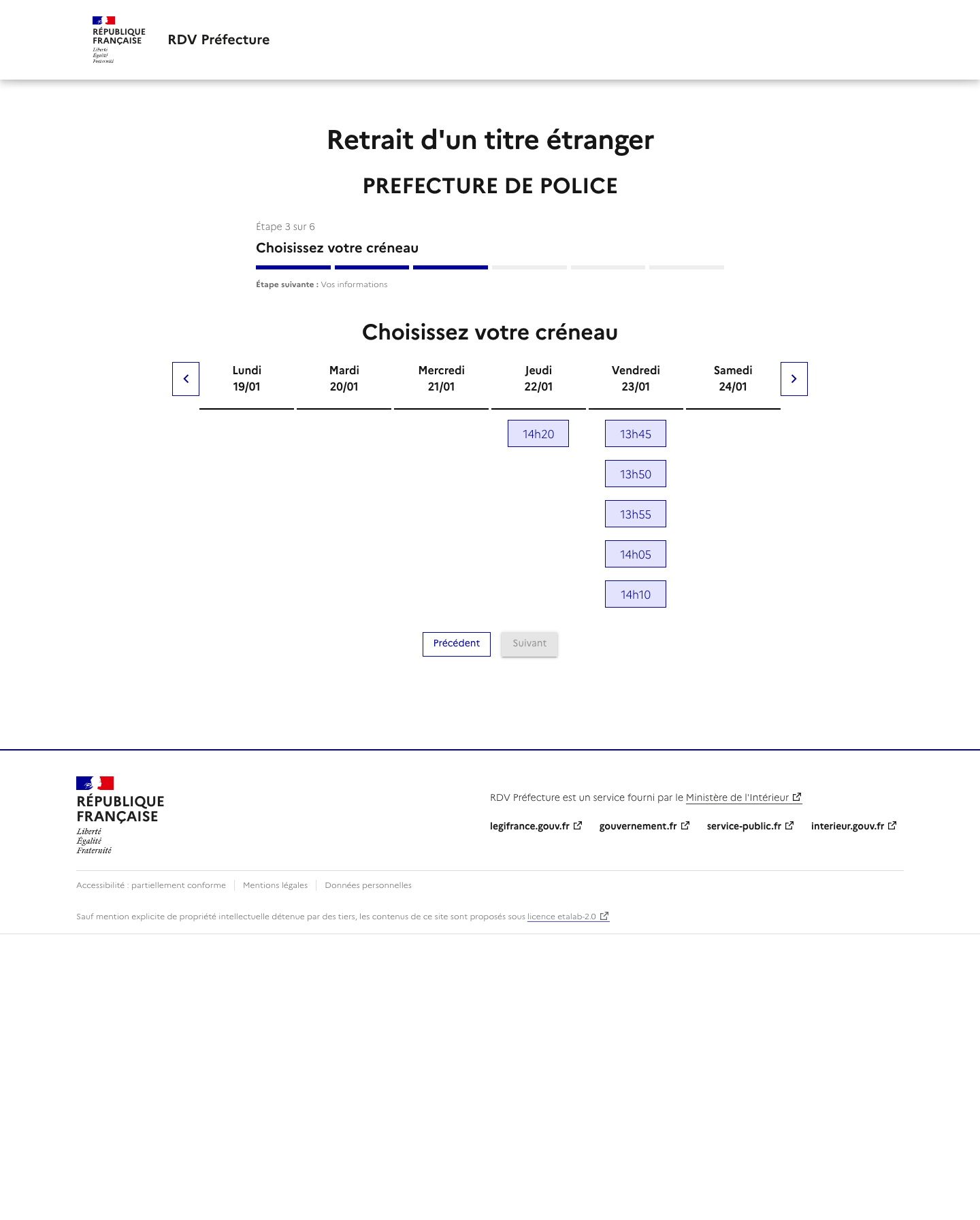 Notre service vous alerte lorsqu'un rendez-vous est disponible mais ne réserve pas de rendez-vous. La disponibilité des rendez-vous dépend totalement des préfectures. Rappel: Les rendez-vous proposés par les préfectures sont gratuits et vous pouvez trouver un rendez-vous par vos propres moyens ! Nous ne sommes pas un site gouvernemental ou un site de préfecture.