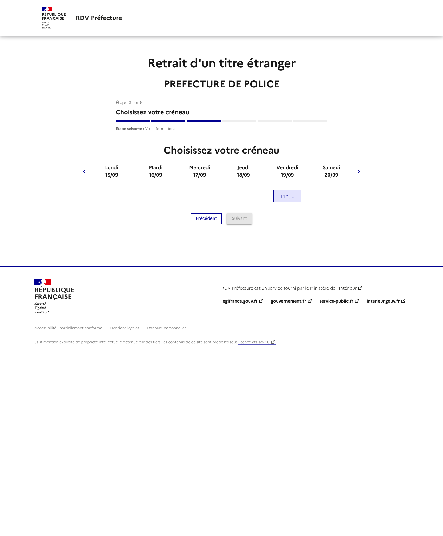 Notre service vous alerte lorsqu'un rendez-vous est disponible mais ne réserve pas de rendez-vous. La disponibilité des rendez-vous dépend totalement des préfectures. Rappel: Les rendez-vous proposés par les préfectures sont gratuits et vous pouvez trouver un rendez-vous par vos propres moyens ! Nous ne sommes pas un site gouvernemental ou un site de préfecture.