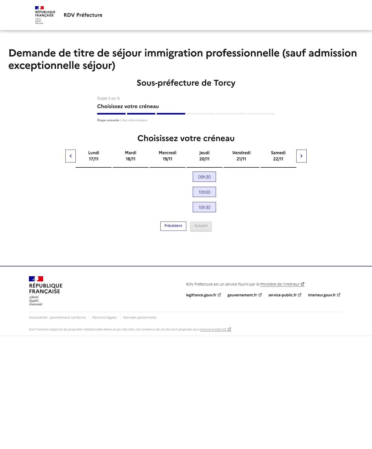 Notre service vous alerte lorsqu'un rendez-vous est disponible mais ne réserve pas de rendez-vous. La disponibilité des rendez-vous dépend totalement des préfectures. Rappel: Les rendez-vous proposés par les préfectures sont gratuits et vous pouvez trouver un rendez-vous par vos propres moyens ! Nous ne sommes pas un site gouvernemental ou un site de préfecture.