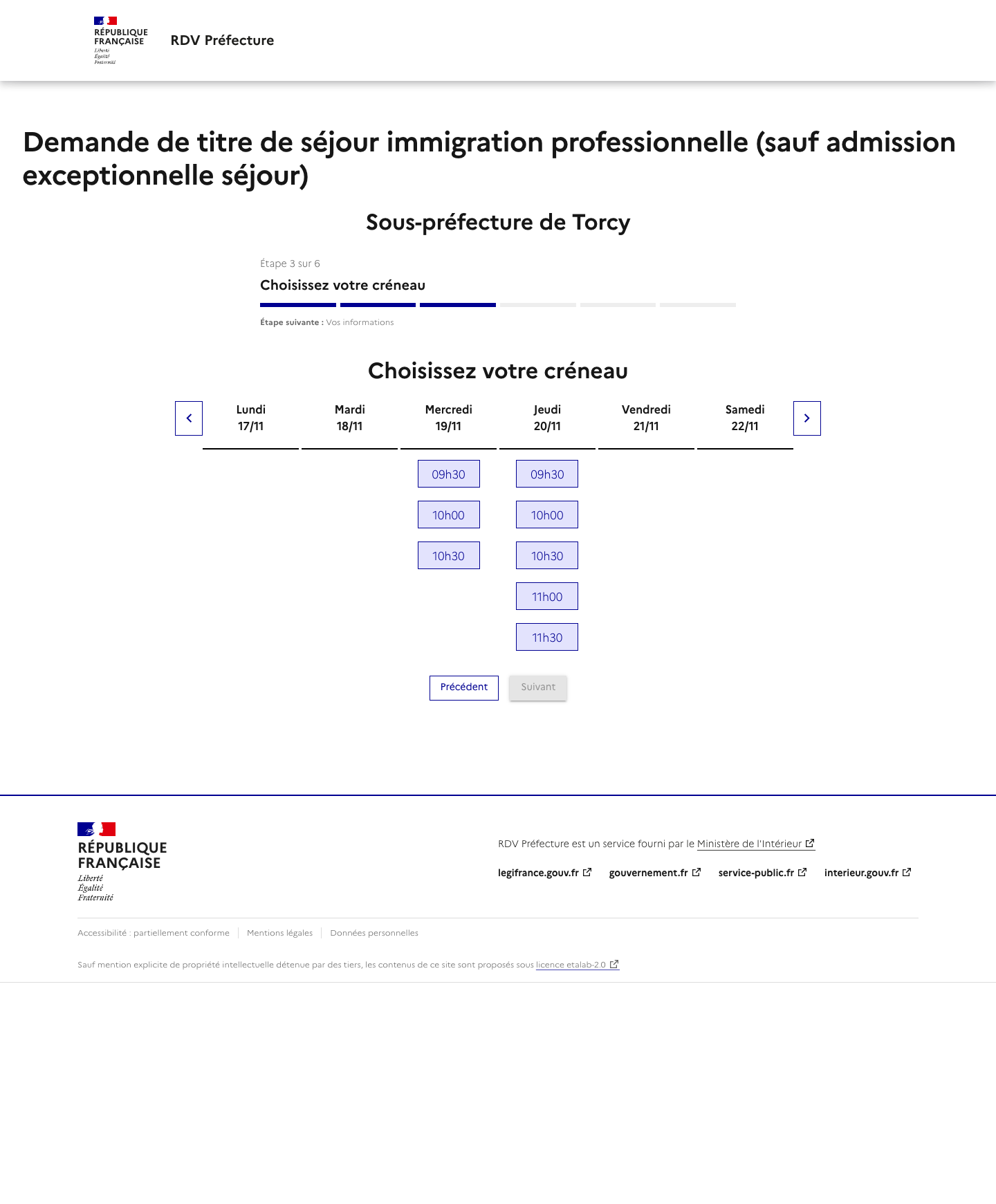 Notre service vous alerte lorsqu'un rendez-vous est disponible mais ne réserve pas de rendez-vous. La disponibilité des rendez-vous dépend totalement des préfectures. Rappel: Les rendez-vous proposés par les préfectures sont gratuits et vous pouvez trouver un rendez-vous par vos propres moyens ! Nous ne sommes pas un site gouvernemental ou un site de préfecture.