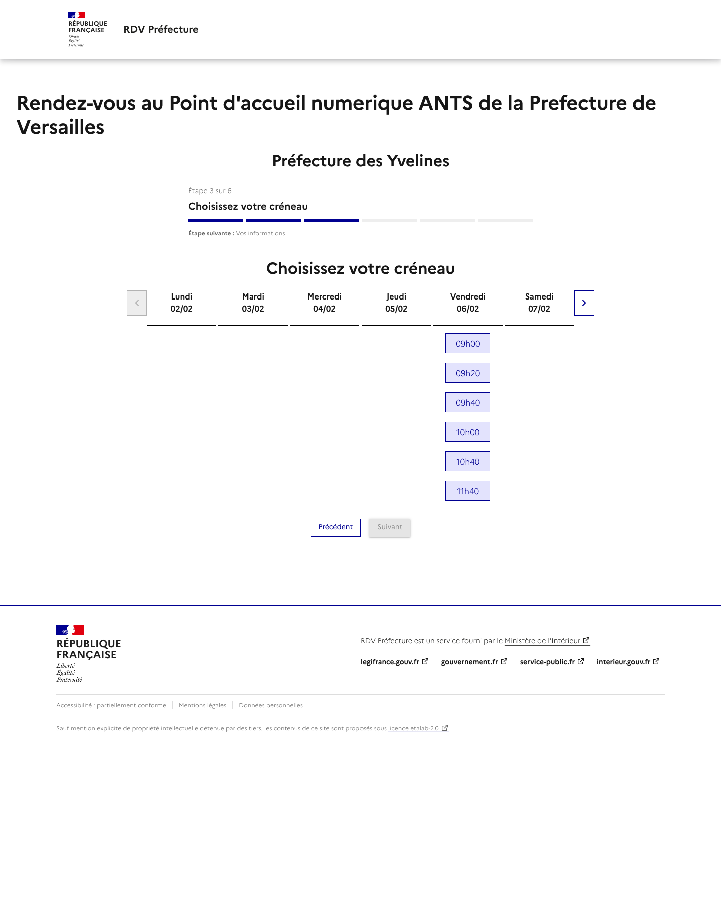 Notre service vous alerte lorsqu'un rendez-vous est disponible mais ne réserve pas de rendez-vous. La disponibilité des rendez-vous dépend totalement des préfectures. Rappel: Les rendez-vous proposés par les préfectures sont gratuits et vous pouvez trouver un rendez-vous par vos propres moyens ! Nous ne sommes pas un site gouvernemental ou un site de préfecture.