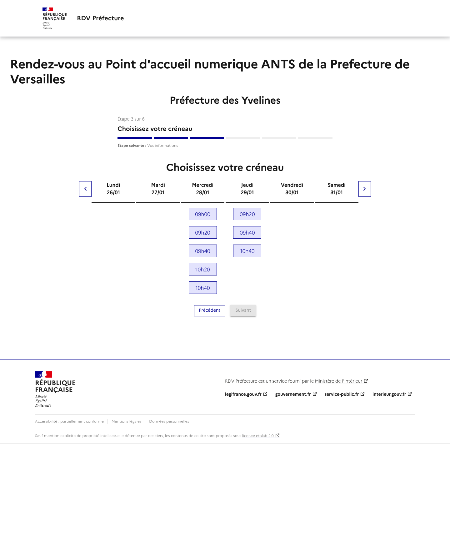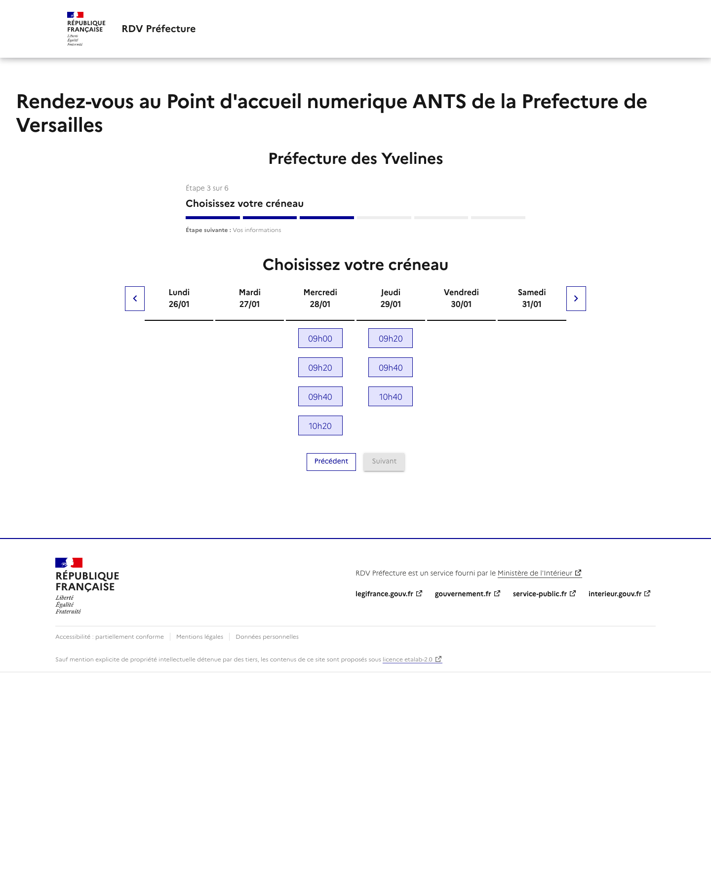 Notre service vous alerte lorsqu'un rendez-vous est disponible mais ne réserve pas de rendez-vous. La disponibilité des rendez-vous dépend totalement des préfectures. Rappel: Les rendez-vous proposés par les préfectures sont gratuits et vous pouvez trouver un rendez-vous par vos propres moyens ! Nous ne sommes pas un site gouvernemental ou un site de préfecture.