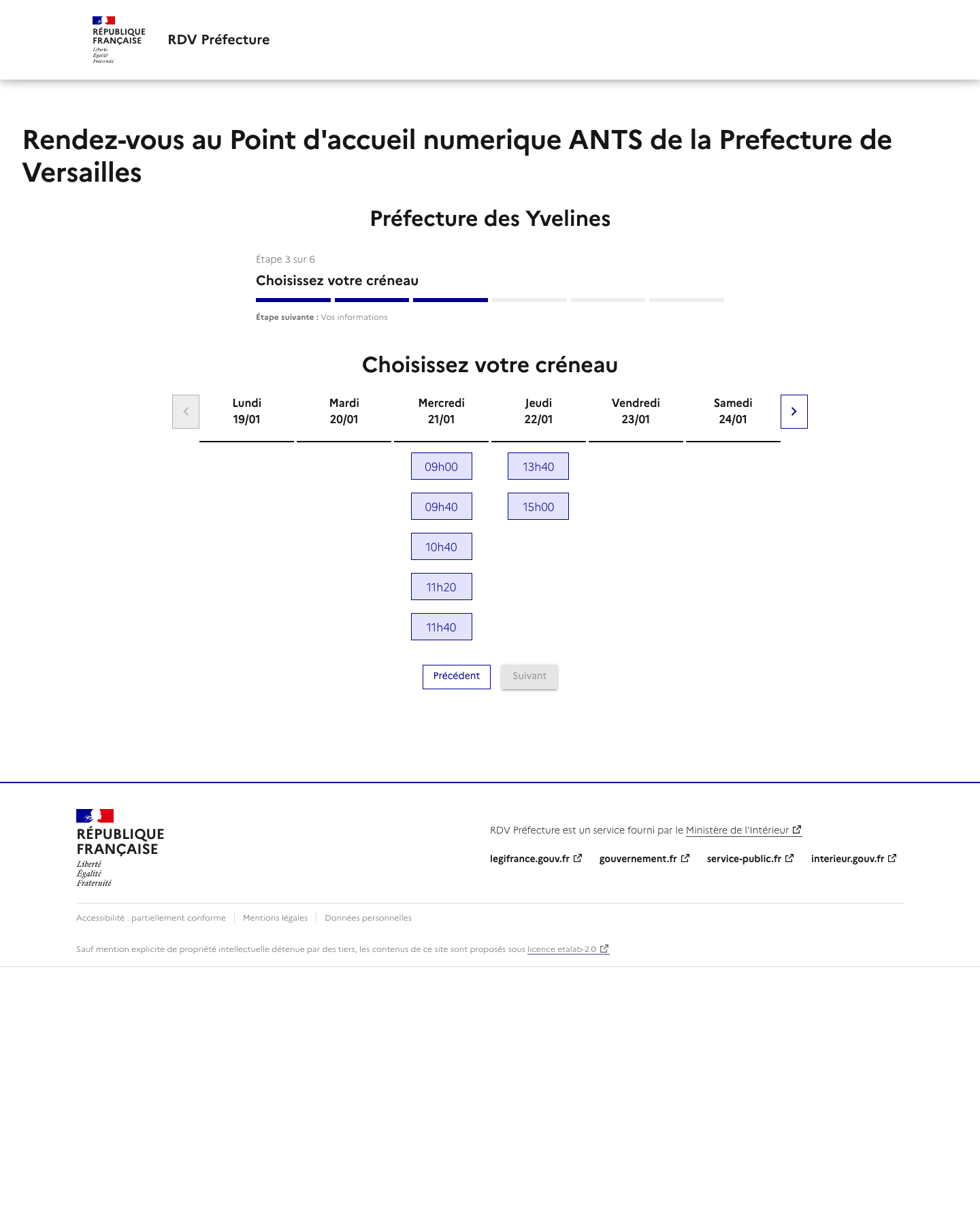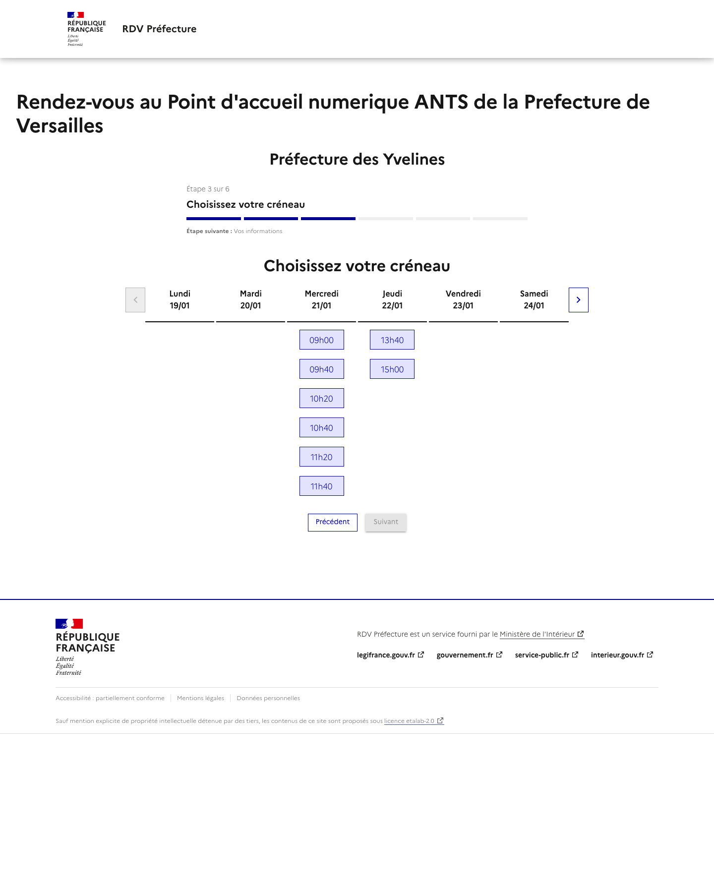 Notre service vous alerte lorsqu'un rendez-vous est disponible mais ne réserve pas de rendez-vous. La disponibilité des rendez-vous dépend totalement des préfectures. Rappel: Les rendez-vous proposés par les préfectures sont gratuits et vous pouvez trouver un rendez-vous par vos propres moyens ! Nous ne sommes pas un site gouvernemental ou un site de préfecture.