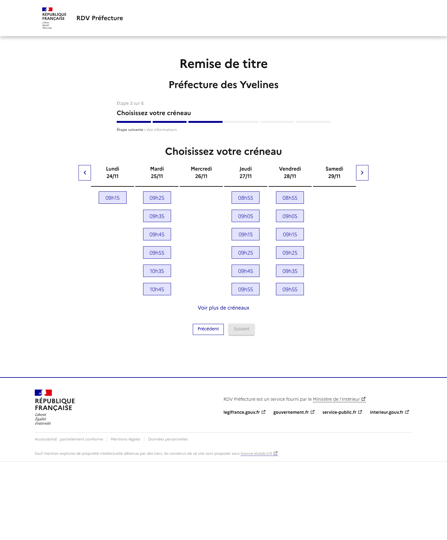 Notre service vous alerte lorsqu'un rendez-vous est disponible mais ne réserve pas de rendez-vous. La disponibilité des rendez-vous dépend totalement des préfectures. Rappel: Les rendez-vous proposés par les préfectures sont gratuits et vous pouvez trouver un rendez-vous par vos propres moyens ! Nous ne sommes pas un site gouvernemental ou un site de préfecture.