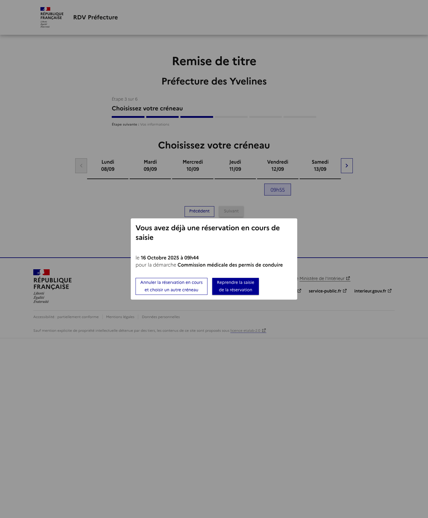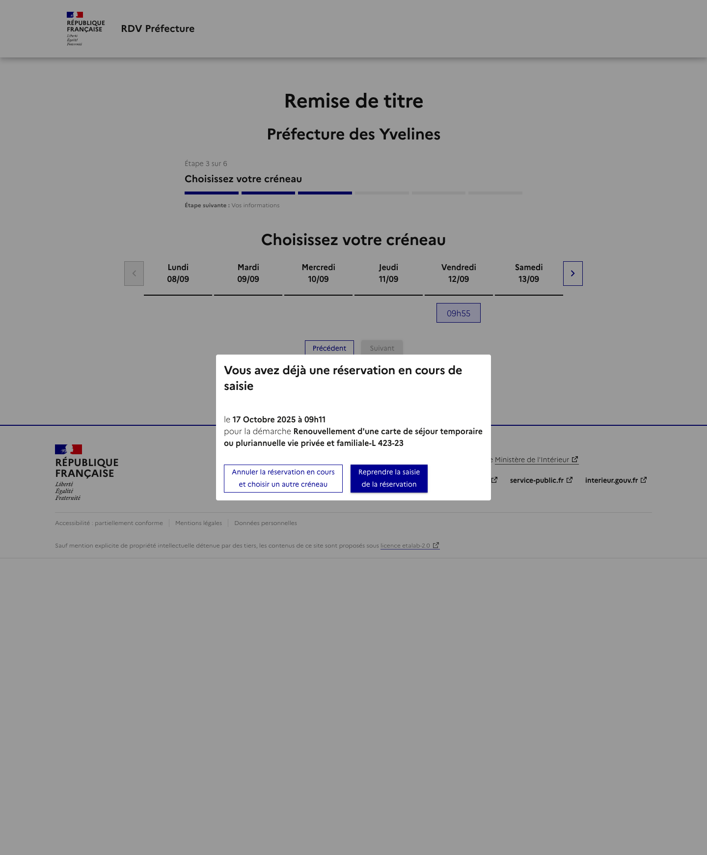 Je m'assure que je dépends de la préfecture de Versailles : le service est exclusivement réservé à la remise de titres gérés par la préfecture.