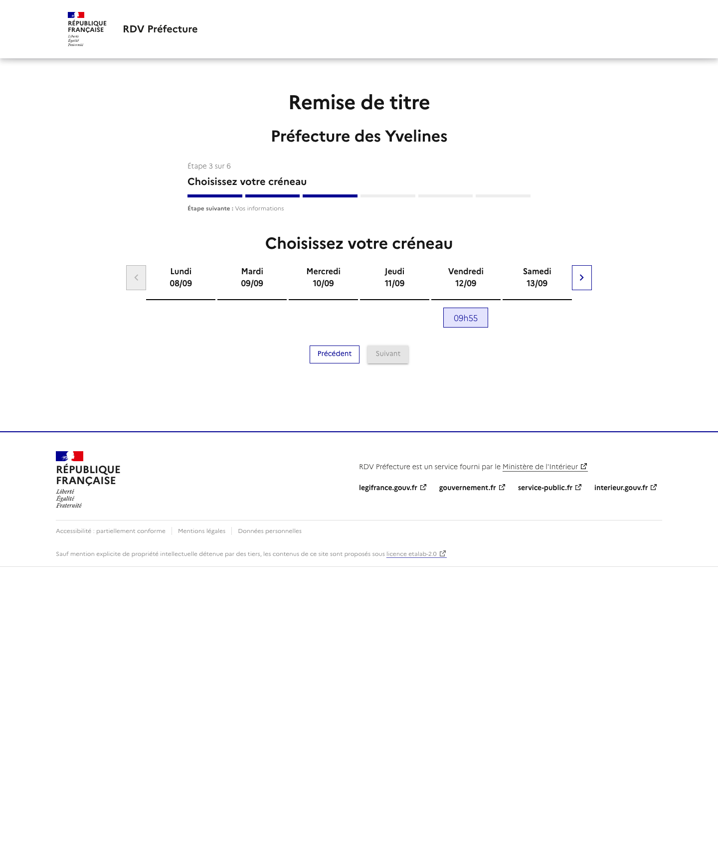 Notre service vous alerte lorsqu'un rendez-vous est disponible mais ne réserve pas de rendez-vous. La disponibilité des rendez-vous dépend totalement des préfectures. Rappel: Les rendez-vous proposés par les préfectures sont gratuits et vous pouvez trouver un rendez-vous par vos propres moyens ! Nous ne sommes pas un site gouvernemental ou un site de préfecture.