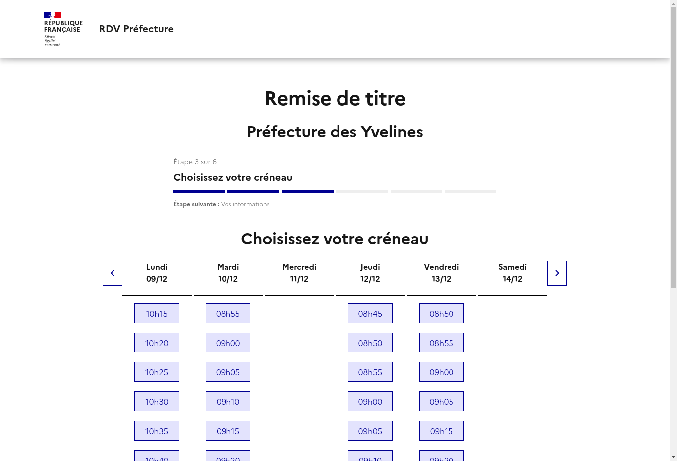 Notre service vous alerte lorsqu'un rendez-vous est disponible mais ne réserve pas de rendez-vous. La disponibilité des rendez-vous dépend totalement des préfectures. Rappel: Les rendez-vous proposés par les préfectures sont gratuits et vous pouvez trouver un rendez-vous par vos propres moyens ! Nous ne sommes pas un site gouvernemental ou un site de préfecture.