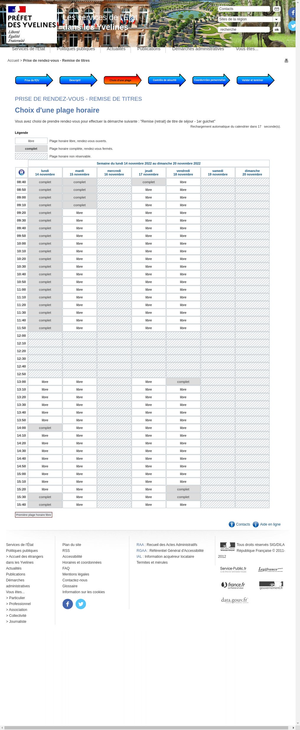 Je m'assure que je dépends de la préfecture de Versailles : le service est exclusivement réservé à la remise de titres gérés par la préfecture.